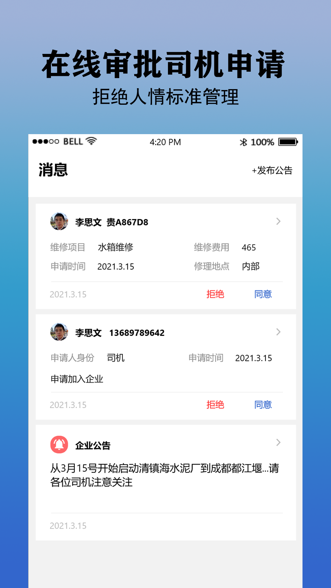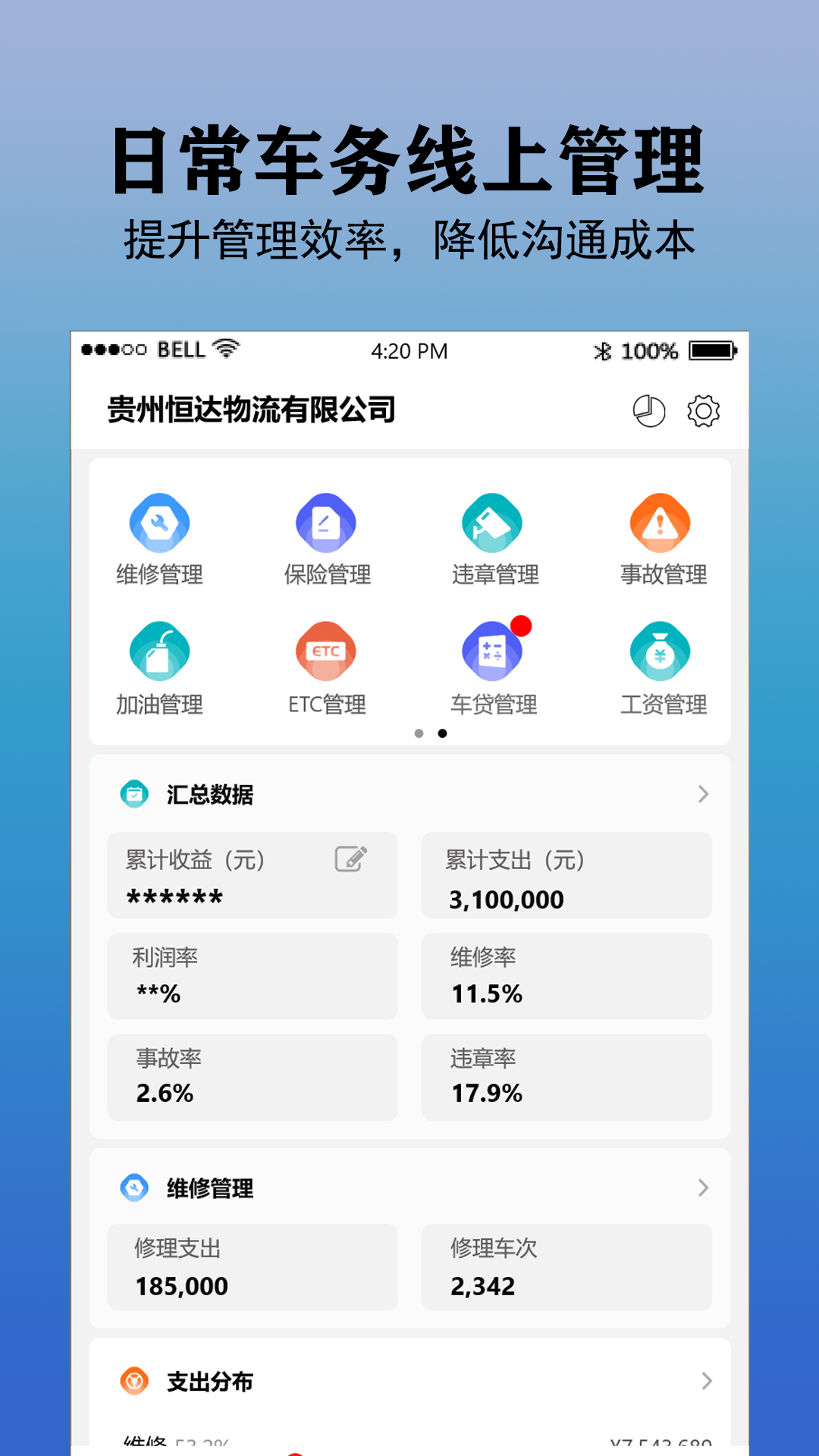 一款为大宗物流企业提供车辆管理、司机管理、日常流程管理、数据管理等服务的应用软件。